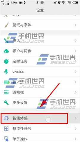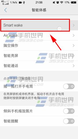 1)打开vivo X5Max手机【设置】,点击【智能体感】,点击【Smart wake】。(如下图)