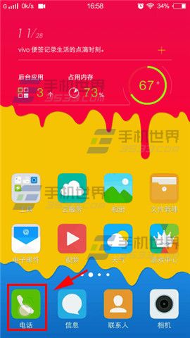 1)打开vivo Xshot【电话】,点击【物理菜单键】,选择【通话设置】。(如下图)