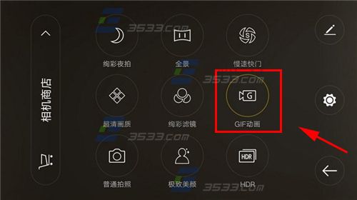 1)打开OPPO R7【相机】点击【三点】找到【GIF动画】。(如下图)
