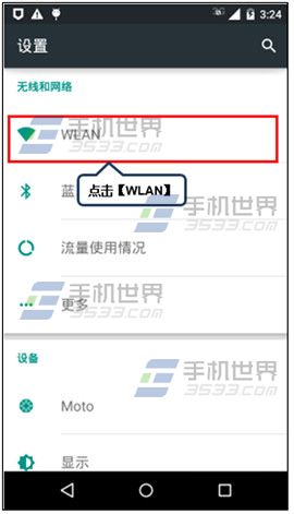 1)进入New Moto X【设置】界面,点击【WLAN】,点击【菜单键】,选择【高级】。(如下图)