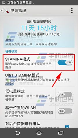打开索尼Z3的【设定】,点击【电源管理】,然后开启【STAMINA模式】就可以了。(如下图)