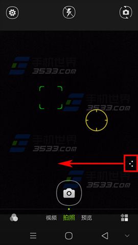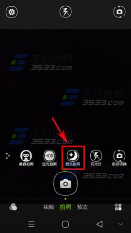 进入到ivvi S6的【拍照】,按住屏幕右侧的【<】向左滑动,呼出拍照模式选择,选择【弱光拍照】就可以了。(如下图)