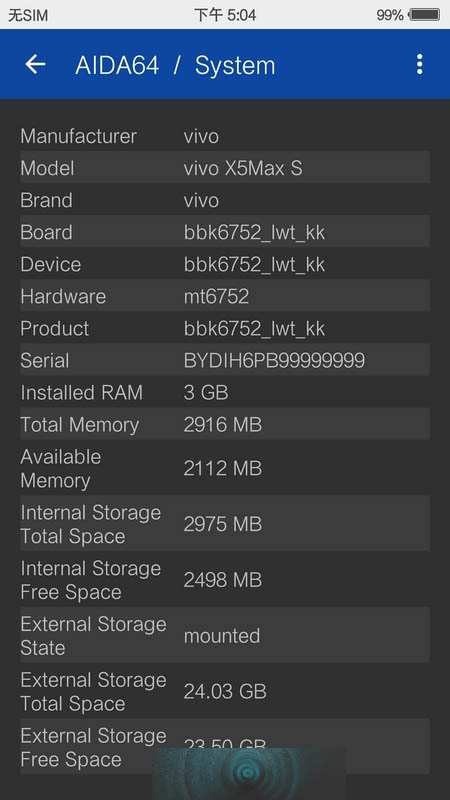X5Max S相对于X5Max的一大提升就是使用了MT6752 1.7GHz八核64位处理器,这和X5Max+的配置是一样的,但是由于系统没有更新到Android 5.0,所以64位特性还不支持。