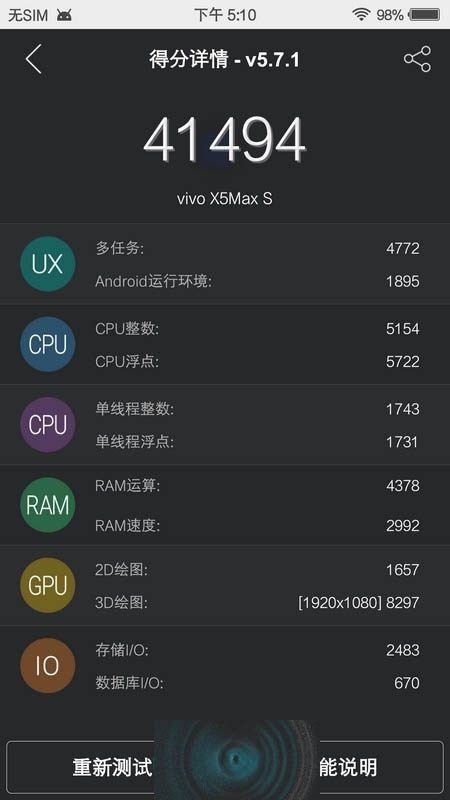 X5Max S的安兔兔跑分超过了41000分,并不算很突出。