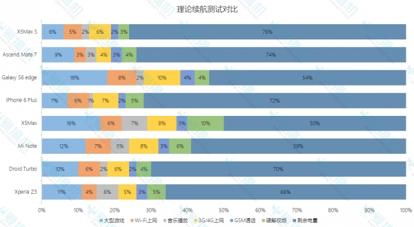 最后我们来看看X5Max S那块4150mAh高能量密度离聚合电池的威力,我们进行了三个半小时中高强度的测试,结果显示X5Max S在测试结束以后依然有多达76%的电量,这也是我们测试过的众多手机里面最强大的,相对于X5Max来说进步更是显而易见的。