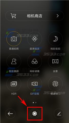 1)打开OPPO R7的【拍照】,点击右下角【花瓣按钮】,点击【齿轮标志】;(如下图)