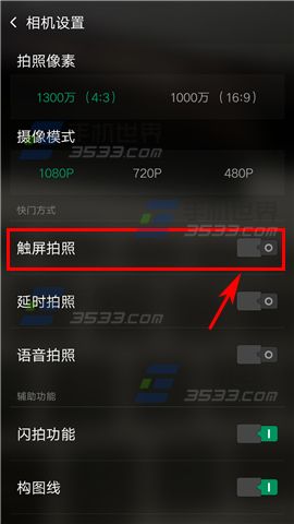 2)开启【触屏拍照】选项就可以了。(如下图)