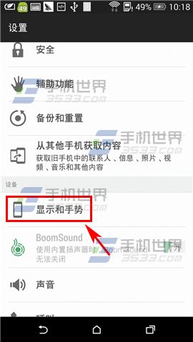 打开HTC M8的【设置】,选择【显示和手势】,关闭【媒体手势】选项就可以了。(如下图)