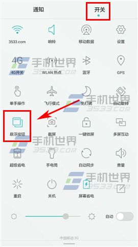 下划打开华为荣耀6plus【通知栏】,展开【开关】界面,将【悬浮按钮】开启即可。(如下图)