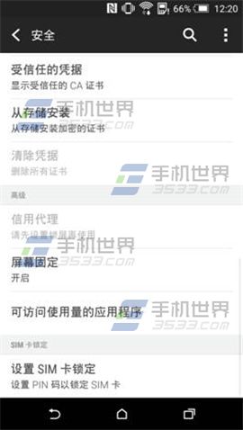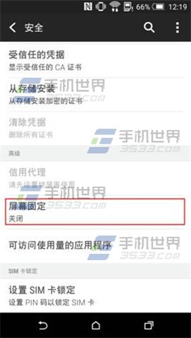 1)打开HTC One M9+的手机【设置】找到【安全】将【屏幕固定】开启。(如下图)