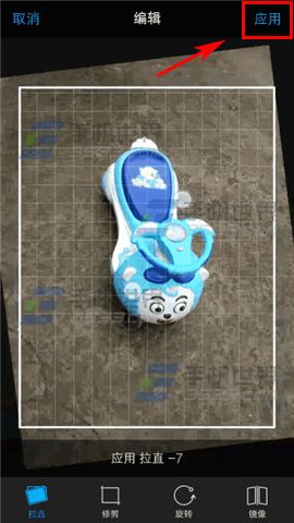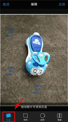 3)点击【拉直】拖动图片至自己觉的满意为止,最后点击【应用】并保存即可。(如下图)