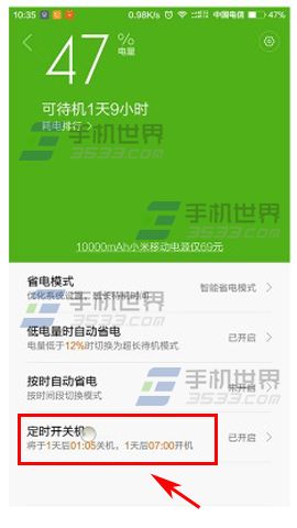 打开小米Note【安全中心】点击【电量】,找到并自行设置【定时开关机】。(如下图)
