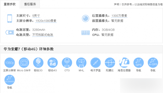 从目前得到的消息获知,荣耀7标配版为金属边框设计,拥有3GB运行内存和16GB存储容量;高配版为大气的全金属机身,提供4GB的运行内存以及高达128GB的内存。