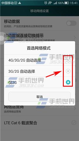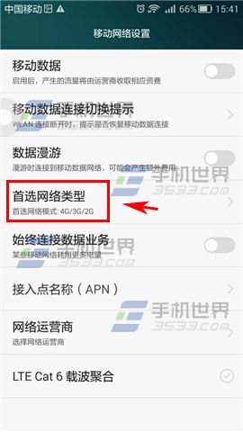 2)点击【首选网络类型】,自行选择所需网络即可。(如下图)