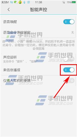 1)进入vivo Y29【设置】,点击【智能声控】将【来信息播报】关闭即可。(如下图)