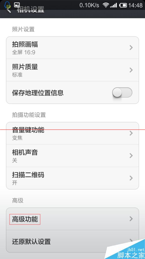 3、进入后下拉找到“高级功能”选项,点击(如下图)