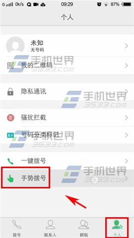 1)打开vivo Xshot【联系人】在【个人】栏目中,点击【手势拨号】,这里以“S”为例,点击【图案S】。(如下图)
