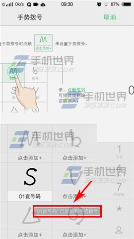 2)请自行设置号码即可,设置完毕后在拨号界面画个“S”即可快速拨号。(如下图)
