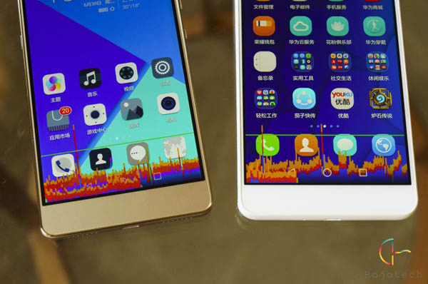 而屏幕方面,荣耀7的细腻度自然更高一些,而两者对比起来的画质都颇为不错,其中荣耀7可能会偏红一点,不过EmUI支持色温调节也不用太担心。总的来看,荣耀7延续了华为产品的设计风格,并将Mate系列和荣耀系列融合,加上全金属机身的运用,重量165g也不算高,整体手感颇佳,做工也很不错,细节上的处理也能看到华为对于1999元的机型依旧用心,还是值得购买的。