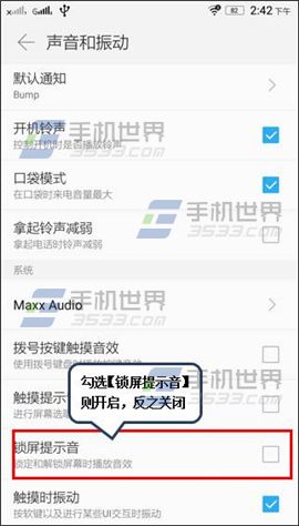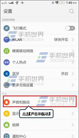 进入黄金斗士S8畅玩版【设置】界面,点击【声音和振动】,将【锁屏提示音】关闭即可。(如下图)