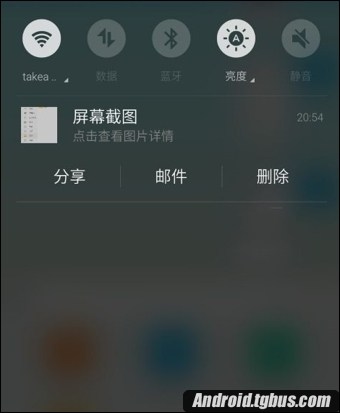 值得一提的是,当截图完成的时候,通知栏上就会有截图的通知,下拉通知栏,点击图片就可以立即进入图库,或者是直接删除、分享给朋友圈等操作。