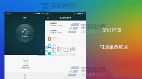2)勾选要备份的数据,如【联系人】【应用程序】等。(如下图)