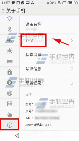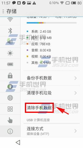 1)打开魅族MX5【设置】,点击【关于手机】选择【存储】,点击【清除手机数据】。(如下图)