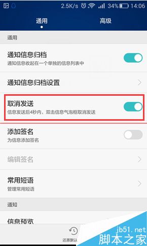 3、设置页面里,通用版块,第三条就是【取消发送】功能,最新的版本里默认是取消的,这里我们把它勾选起来。