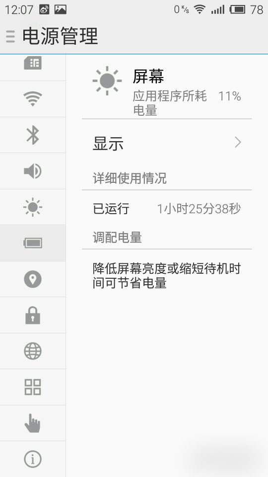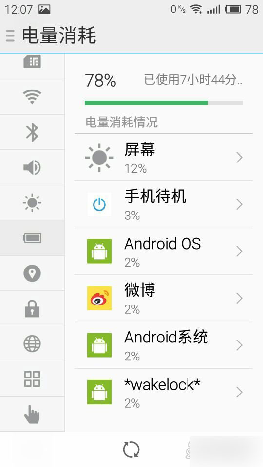 耗电量增加了,常驻微信、QQ、微博,亮度70%左右,均衡模式,1个半小时用了20%左右,而且还只是WiFi,4G会更凶,但是待机几乎不耗电。