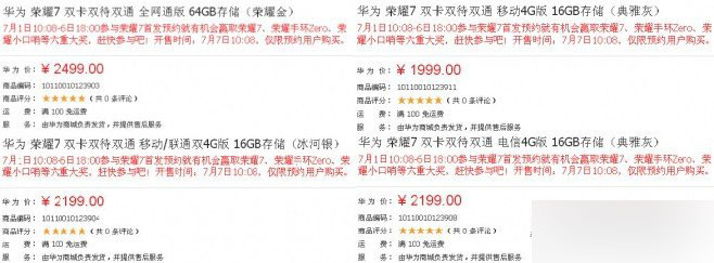 总的来说,荣耀7所有版本的性能是一样的,除了全网通的存储空间是64GB。所以对网络制式没有要求的用户直接买最便宜的1999元荣耀7移动版或者电信版就好。而双卡用户则可以购买2199元的双4G版或者2499元的全网通版。