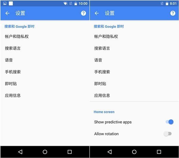 为了迎合越来越大的手机屏幕以及统一手机与平板间的操作,谷歌也终于在原生系统中加入了横屏显示。我们长按桌面进入设置,相比之前的版本该版本的设置选项更多,最下面我们可以看到最下面有一个Allow rotation的选项,打开之后整个设备就可以横屏显示了。经过小编实测,系统及系统自带应用基本都支持横屏显示,不过目前大部分第三方应用却不支持此功能,希望日后第三方应用能够及时跟进。