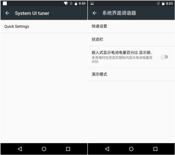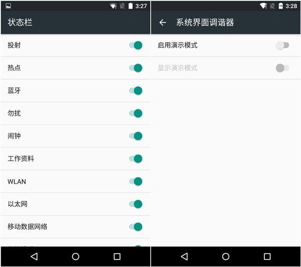 在上一个版本中,下拉状态栏自定义程度还非常有限,而这次谷歌汉化了此功能同时丰富了自定义内容,比如说可自由选择显示什么状态栏图标、嵌入式的电池电量百分比,还新增一个演示模式。