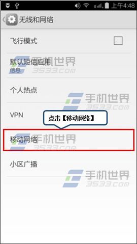 1)进入联想A8畅玩版的【设置】界面,点击【更多】,然后选择【移动网络】。(如下图)