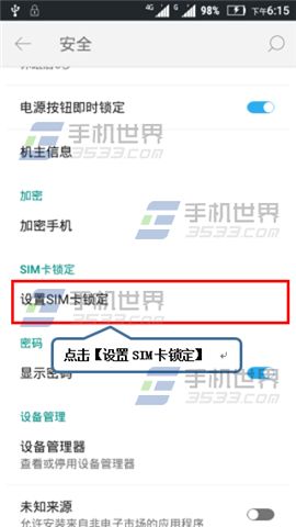1)打开黄金斗士S8畅玩版【设置】,点击【安全】,进入【设置SIM卡锁定】栏目。(如下图)