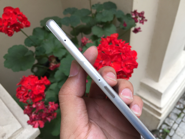 其他细节部分,边框左侧除了一个micro SIM卡和一个nano SIM/TF卡插槽外,还加入了一个专门的拍照键,主要应用场景为左侧自拍。