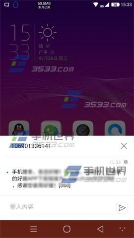 2)设置完毕后即可实现短信弹窗效果。(如下图)