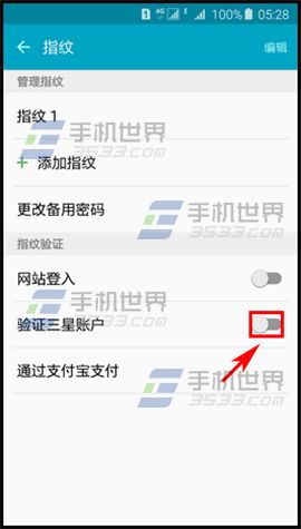 3)在指纹界面开启【验证三星账户】右边按钮,阅读完说明后点击【确认】。(如下图)