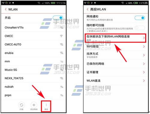 点击设置,进入界面找到【WLAN】并点击打开,在WLAN界面点击右下方【高级】进入,点击【在休眠状态下保持WLAN网络连接】,选择【始终】即可。(如下图)