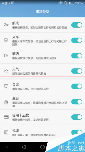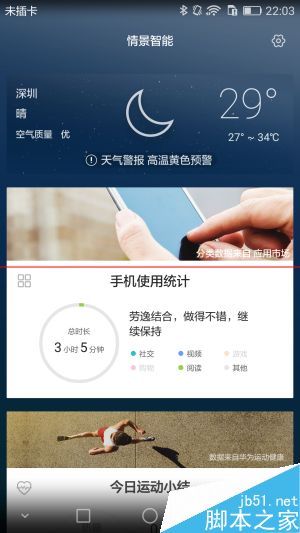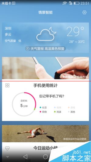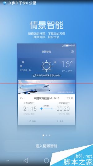 情景智能指的是根据试用者的使用习惯和浏览访问过的特定信息,在每天的特定时段给出类似“温馨提示”的提醒,事项类型则包括高铁火车酒店天气等等常用到的方面。荣耀7还会推送第二天的天气应对提醒,诸如“明天有雨记得带伞”、“昼夜温差大增减衣物”等等,比单纯的气温和天气提醒要更温馨,同时,这也体现出荣耀那群理工男的“丝丝柔情”。