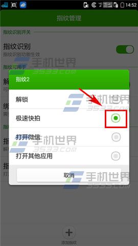 1)进入到指纹管理界面,点击【修改】按钮,选择【极速快拍】。(如下图)