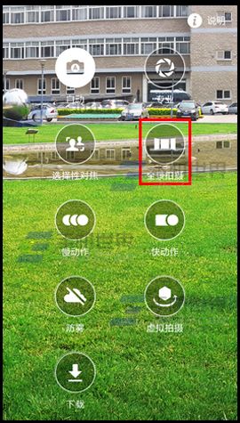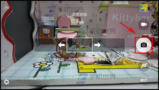 2)完成第一步后,点击【照相机】按钮,然后朝一个方向缓慢移动设备。(如下图)