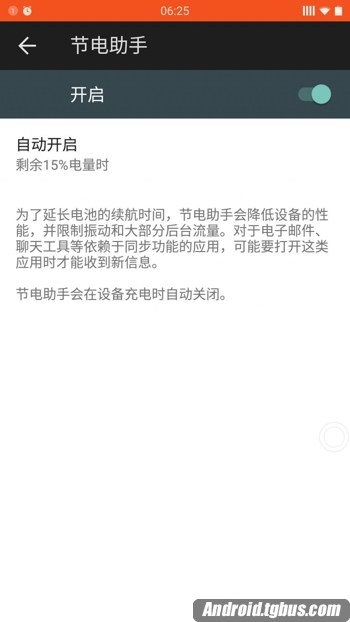 为了延长电池的续航时间,节电助手会降低设备的性能,并限制振动和大部分后台流量。对于电子邮件、聊天工具等依赖于同步功能的应用,可能要打开这类应用时才能收到信息。另外,节电助手会在设备充电时自动关闭。