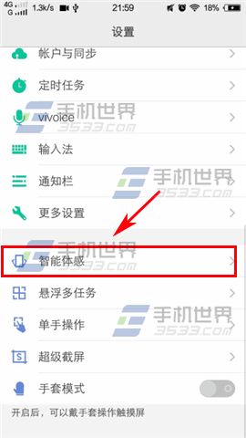 1)进入vivo X5Max手机的设置界面,点击【智能体感】。(如下图)