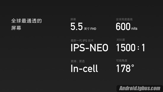 屏幕方面,一加专门定制了一块屏幕,这块全球最新的IPS屏幕亮度最高可达600尼特,阳光下看手机毫无压力。这块定制的IPS NEO负向液晶面板,采用了In-cell技术和第三代大猩猩玻璃。静态对比度高达1500:1、可视角度178度。官方称,“一加2我们眼中最好的屏幕,全球最通透的屏幕。”
