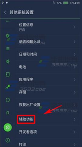 进入My布拉格设置界面,找到并点击其他系统设置进入,点击【辅助功能】,滑动打开【按电源按钮结束通话】右边按钮即可。(如下图)