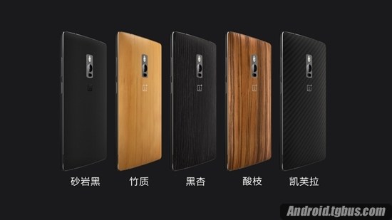 一加手机2提供砂岩黑、竹质、黑杏、酸枝、凯芙拉五款后盖版本,5款有不同外观,不同触感、不同个性。