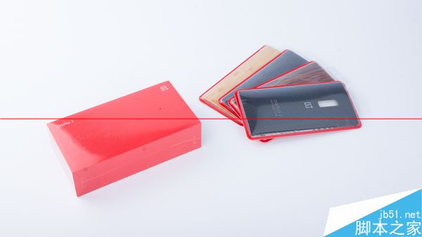 一加手机2的红盒子,非常紧凑,另外还有4款个性后盖,砂岩黑后盖为默认标配,这次一加手机2取消了一加手机1的BabySkin后盖,有点可惜。