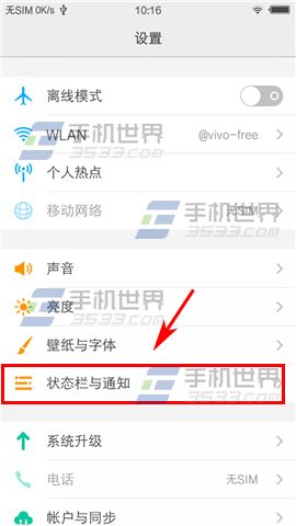 1)点击进入vivo X5Max的手机【设置】,在设置界面点击【状态栏与通知】。(如下图)
