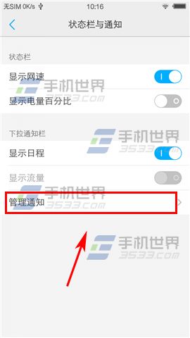 2)点击【管理通知】,关闭你想关闭的应用程序的通知右边的【按钮】即可。(如下图)