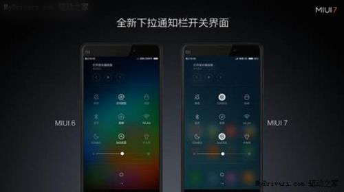 MIUI 7对下拉通知栏进行了重新设计,开关的动画效果也有改变,相比MIUI6而言,更加圆润和更加直观。